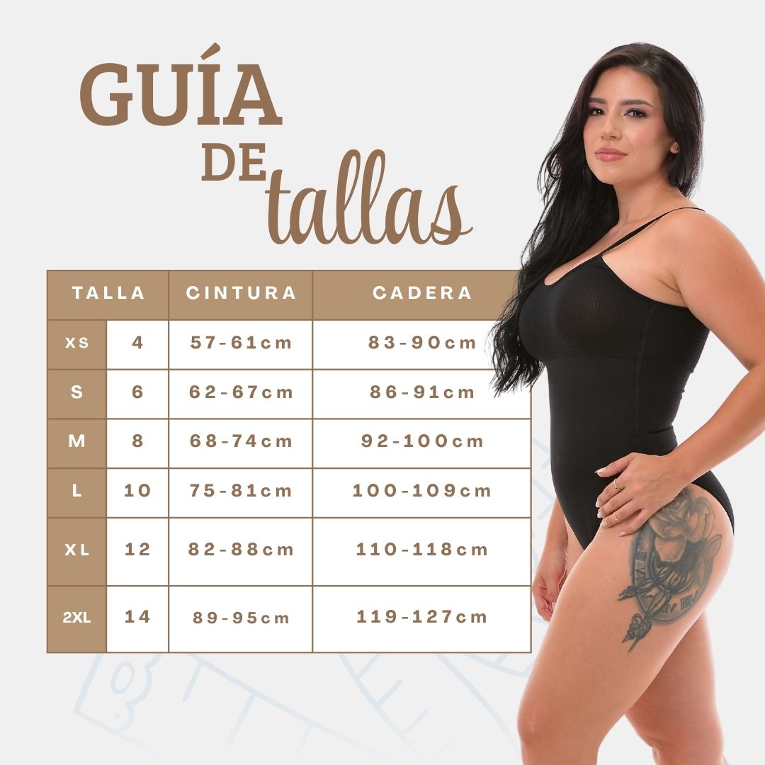 Encontrar tu talla ideal es clave para una experiencia transformadora. Consulta nuestra guía de tallas detallada, diseñada para ayudarte a elegir el ajuste que realzará tu figura a la perfección, asegurando un confort y un sculpt impecable.